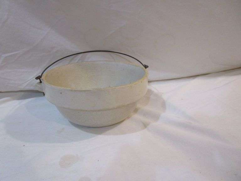 8 INCH CROCK BOWL WITH WIRE HANDLE