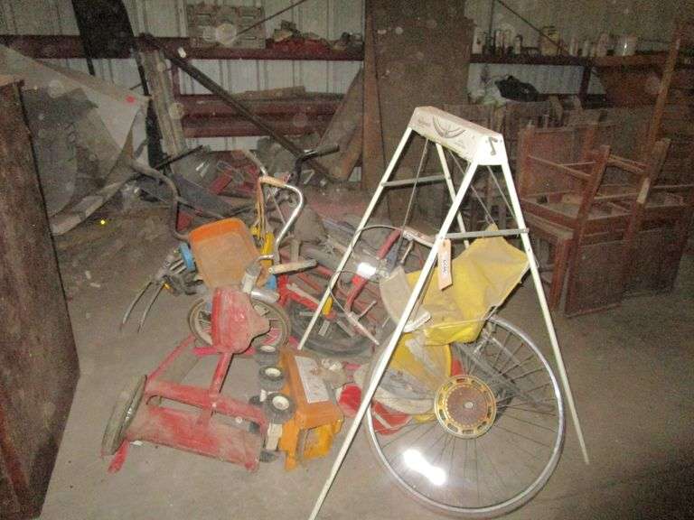 LARGE PILE KID'S TRIKES-BIKES AND TOYS