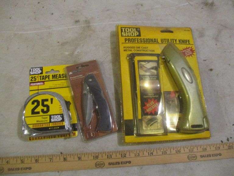 ASSORTED LOT OF TAPE MEASURES AND KNIVES