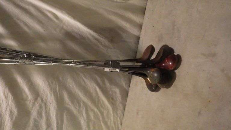 SET OF OLD GOLF CLUBS, MOSTLY WOOD