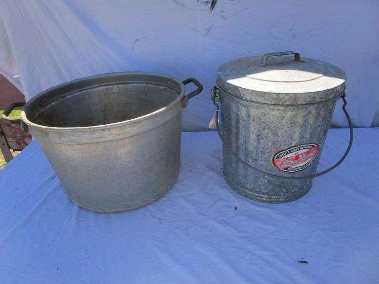 OLD ALUMINUMN POT AND CAN WITH LIS