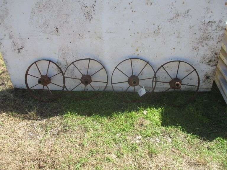 4 STEEL DRILL?? WHEELS, 18 INCHES ACROSS