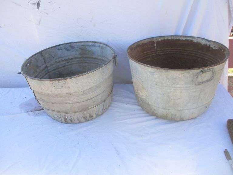 2 OLD GALVANIZED 1/2 BU BASKETS