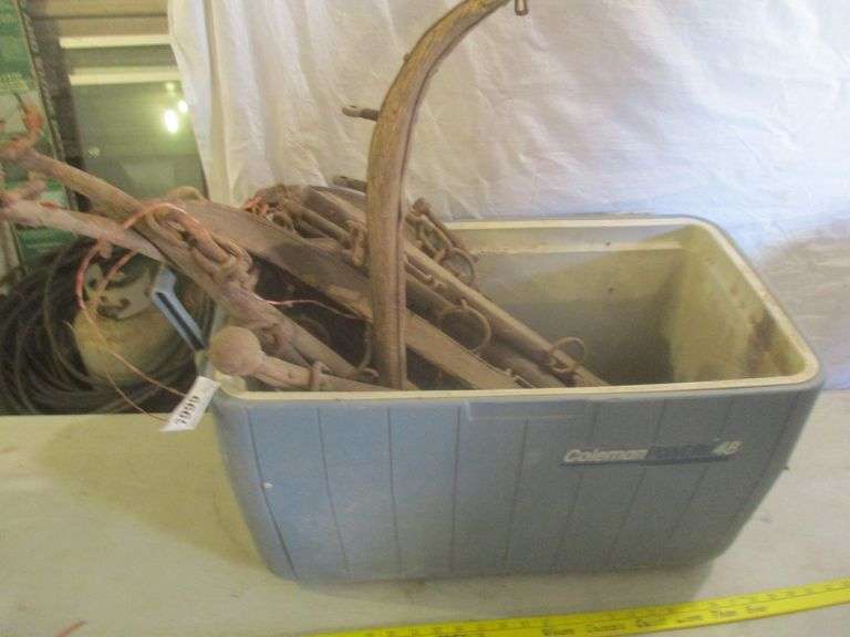 LARGE BOX OF OLD HORSE HAMES AND OTHER
