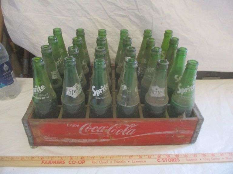 24 SPRITE POP BOTTLES IN COKE WOODEN CASE