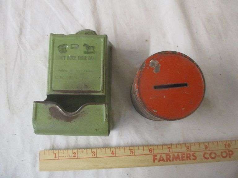 TIN TOY DRUM & METAL MATCH STICK BOX W/ADV.
