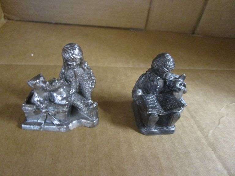 2 GIRL WITH DOGS/BEAR PEWTER STATUES BY MICHAEL RICKER, MAY HAVE CO