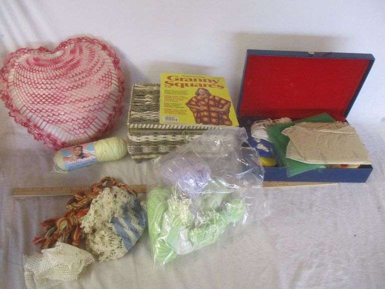CROCHET- SEWING SUPPLIES AND RELATED, LARGE BOX