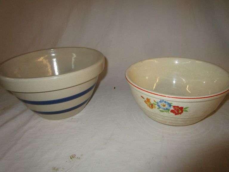 CROCK BLUE BAND BOWL AND HALL'S 7 INCH BOWL