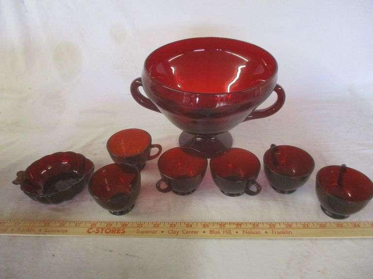 RUBY RED PUNCH BOWL & 6 CUPS & SPOON HOLDER?